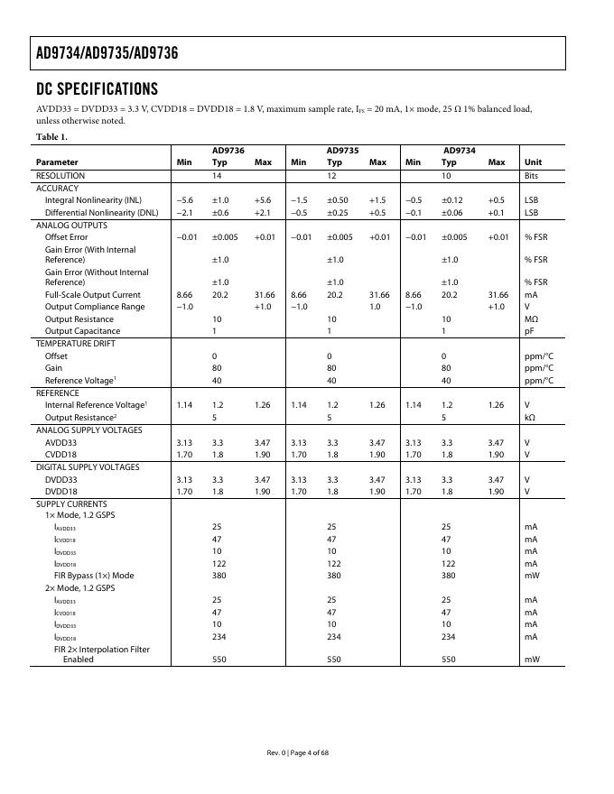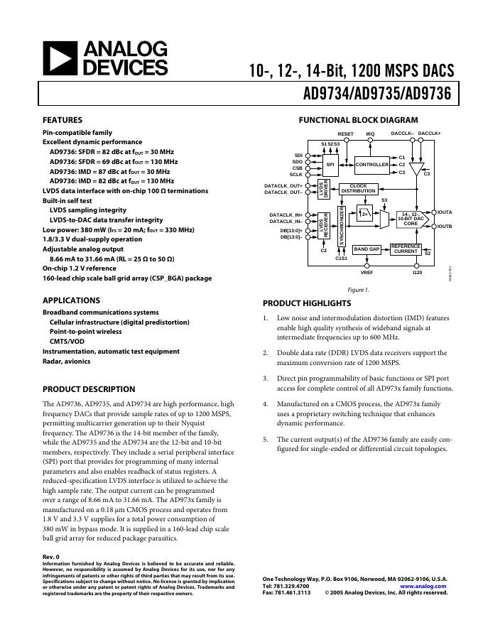 ANALOG DEVICES - 10-, 12-, 14-Bit, 1200 MSPS DACS AD9734/AD9735/AD9736 数据手册.pdf