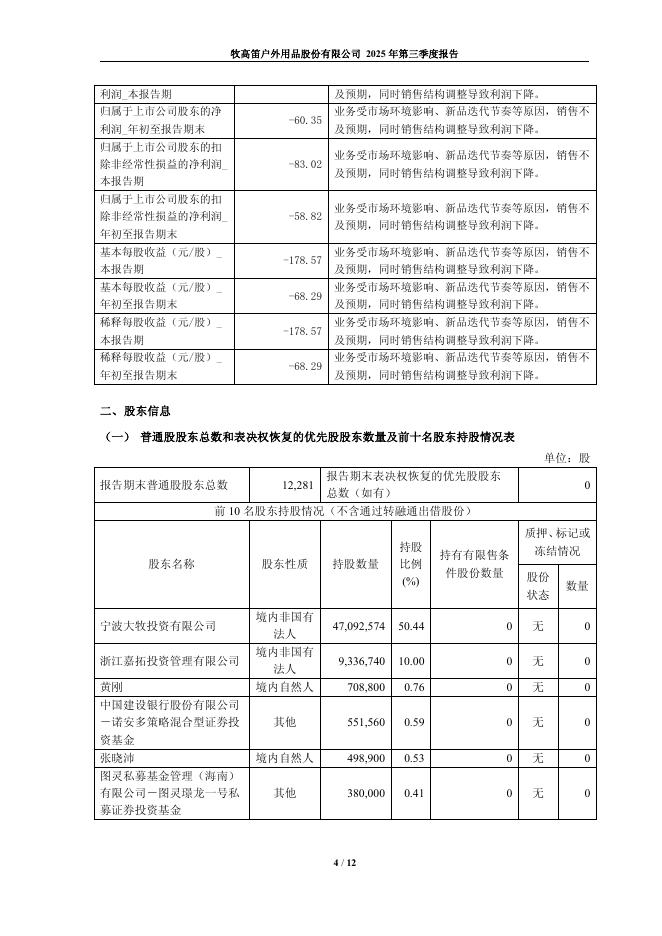 603908-牧高笛:牧高笛户外用品股份有限公司2025年第三季度报告.pdf