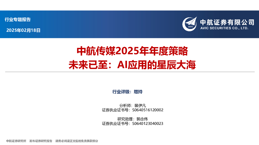 中航证券:中航传媒2025年年度策略:未来已至:AI应用的星辰大海.pdf