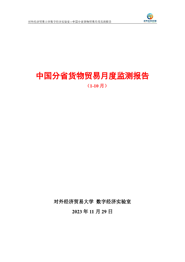 对外经济贸易大学:中国分省货物贸易月度监测报告(2023年1-10月).pdf