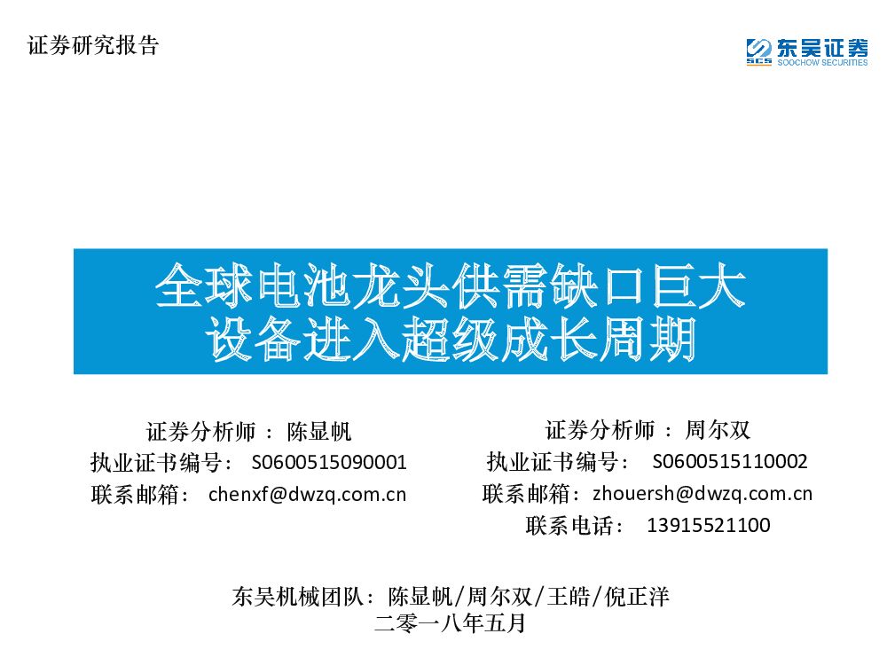 东吴证券:机械设备:全球电池龙头供需缺口巨大 设备进入超级成长周期.pdf