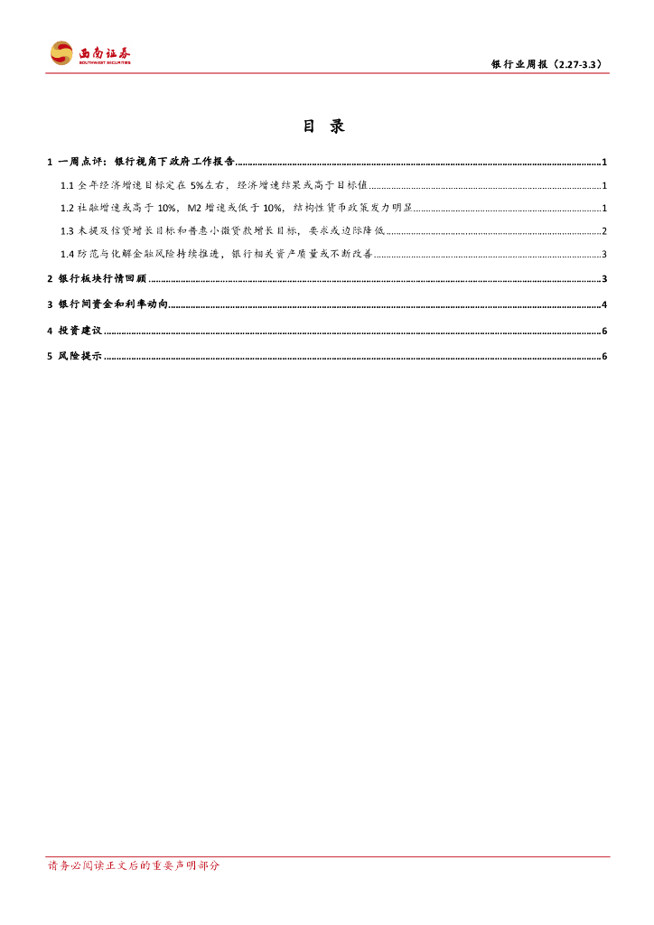 西南证券:银行业周报:银行视角下2023年政府工作报告.pdf