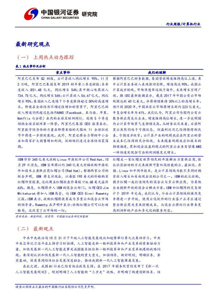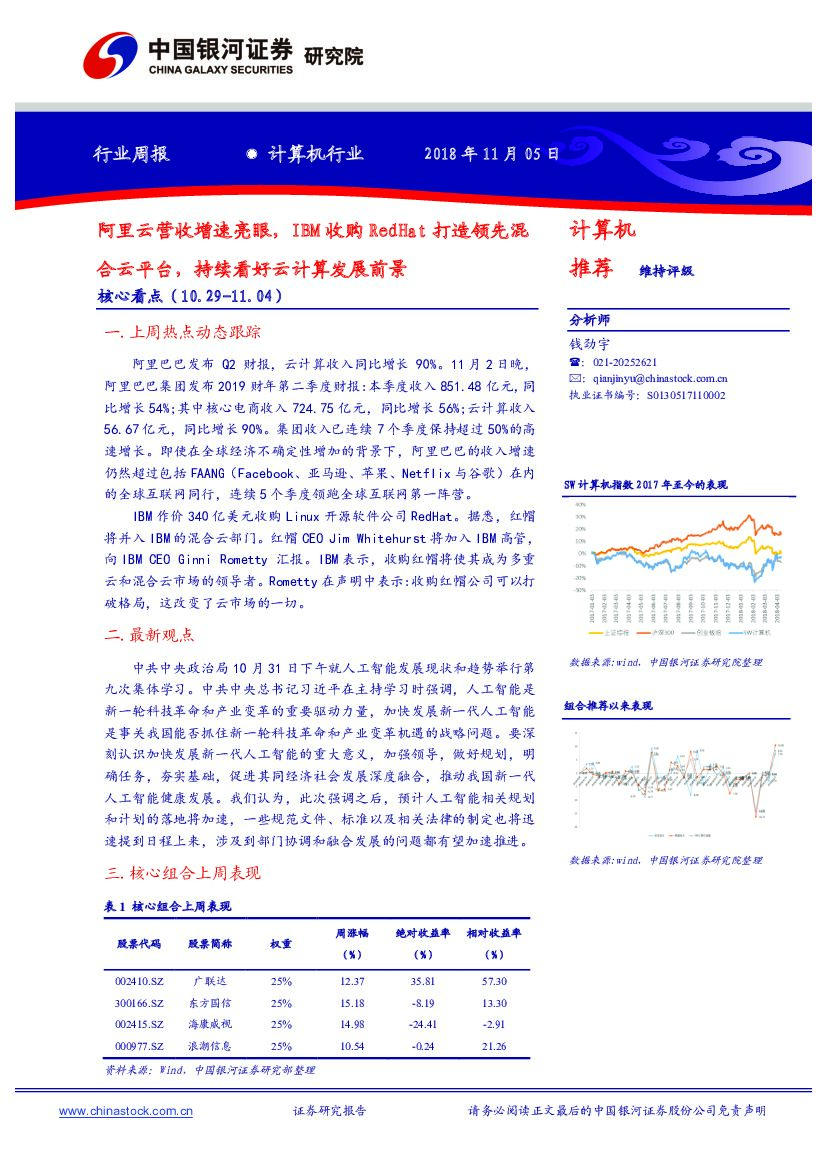 中国银河:计算机行业周报:阿里云营收增速亮眼,IBM收购RedHat打造领先混合云平台,持续看好云计算发展前景.pdf