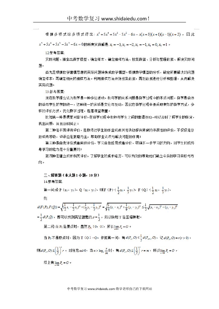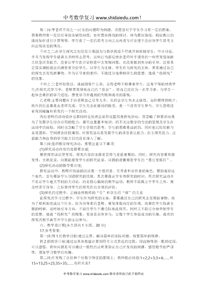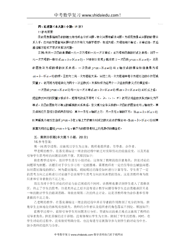 上半年全国教师资格考试《数学学科知识与教学能力(初中)》试题答案完整版.doc