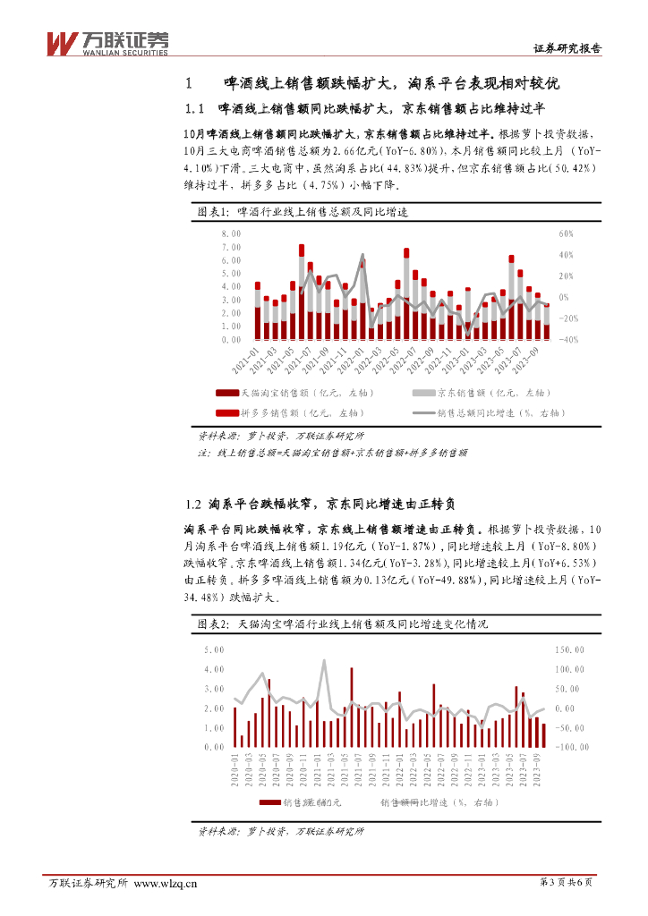 万联证券:啤酒行业10月电商数据跟踪:10月啤酒线上销售同比跌幅扩大,淘系平台相对较优.pdf
