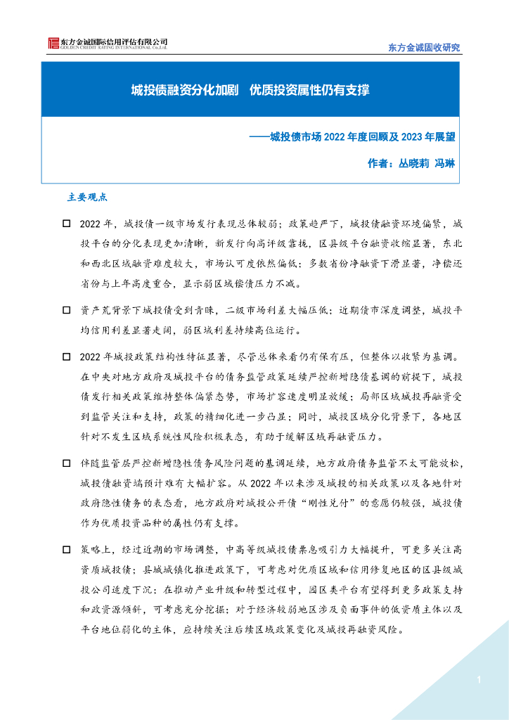 东方金诚:城投债市场2022年度回顾及2023年展望.pdf