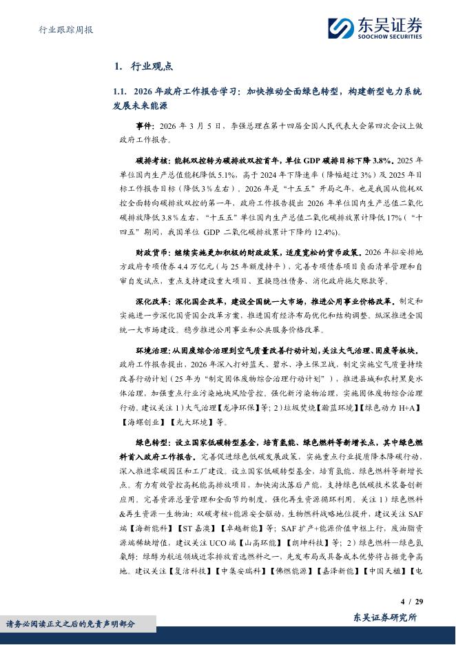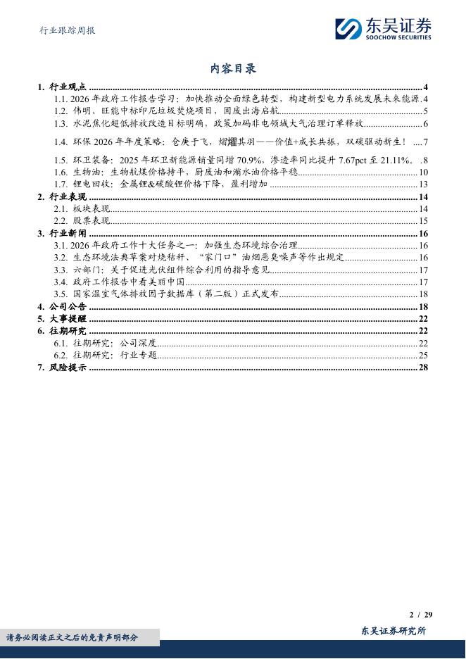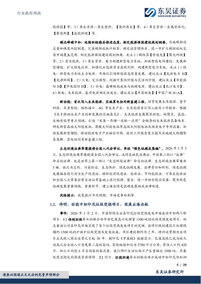 东吴证券:环保行业跟踪周报:2026年政府工作报告加快推动全面绿色转型;伟明、旺能率先中标印尼垃圾焚烧项目.pdf