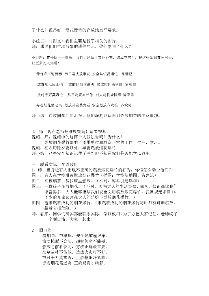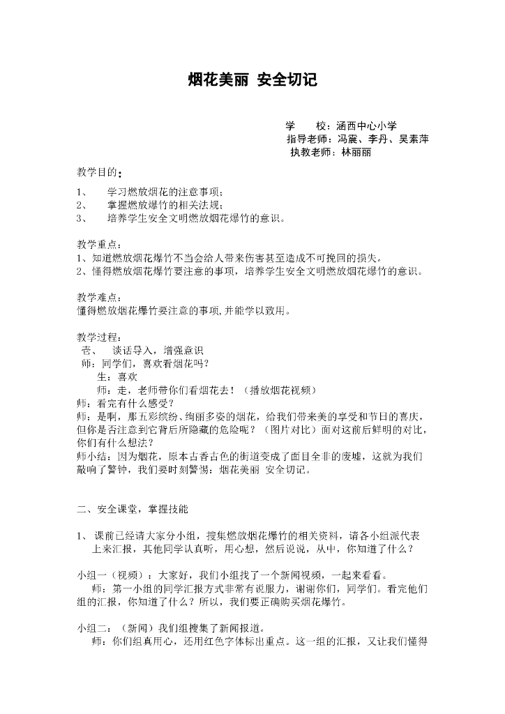 福建涵西中心小学《烟花美丽 安全切记》教案.doc