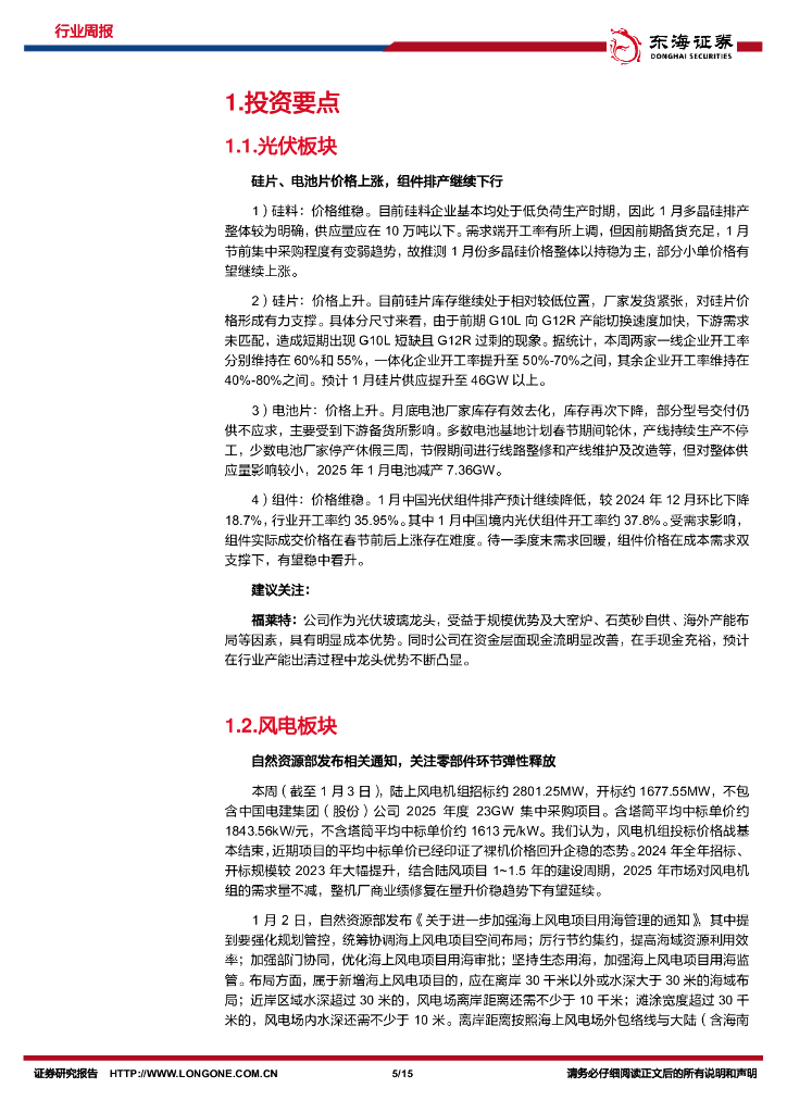 东海证券:新能源电力行业周报:自然资源部发布海上风电用海管理通知,硅片、电池片价格上涨.pdf