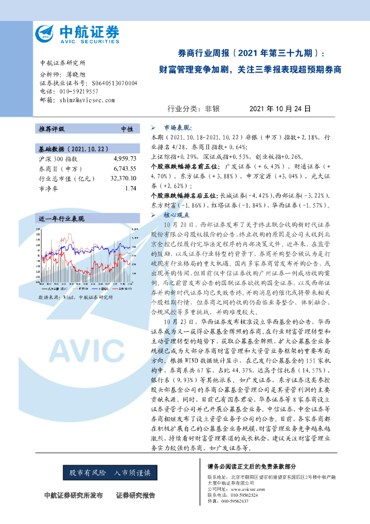 中航证券:券商行业周报(2021年第三十九期):财富管理竞争加剧,关注三季报表现超预期券商.pdf