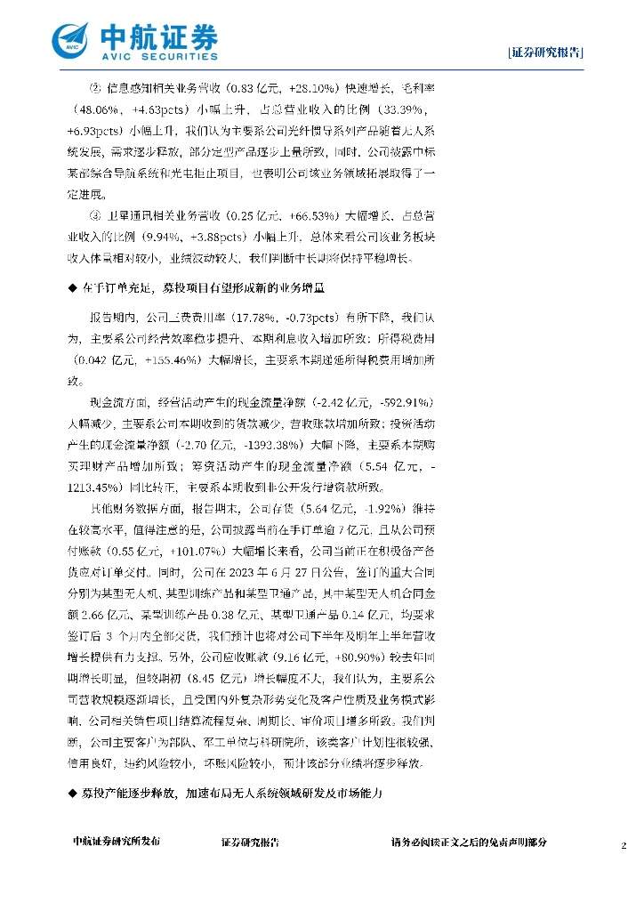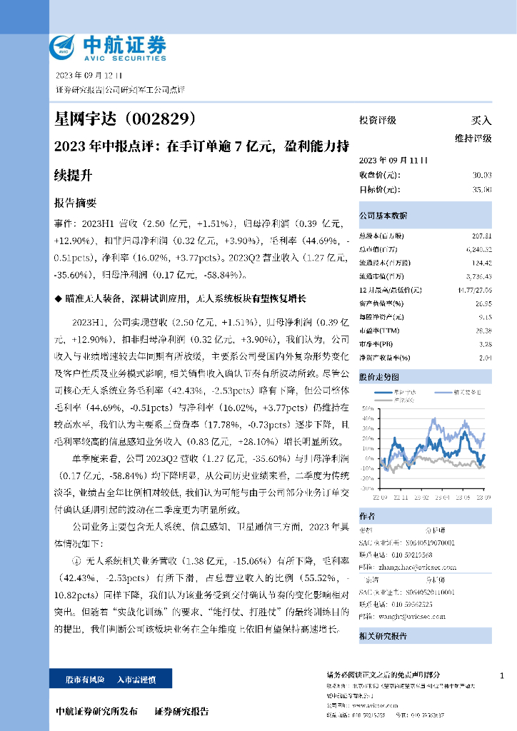 中航证券:星网宇达(002829)-2023年中报点评:在手订单逾7亿元,盈利能力持续提升.pdf