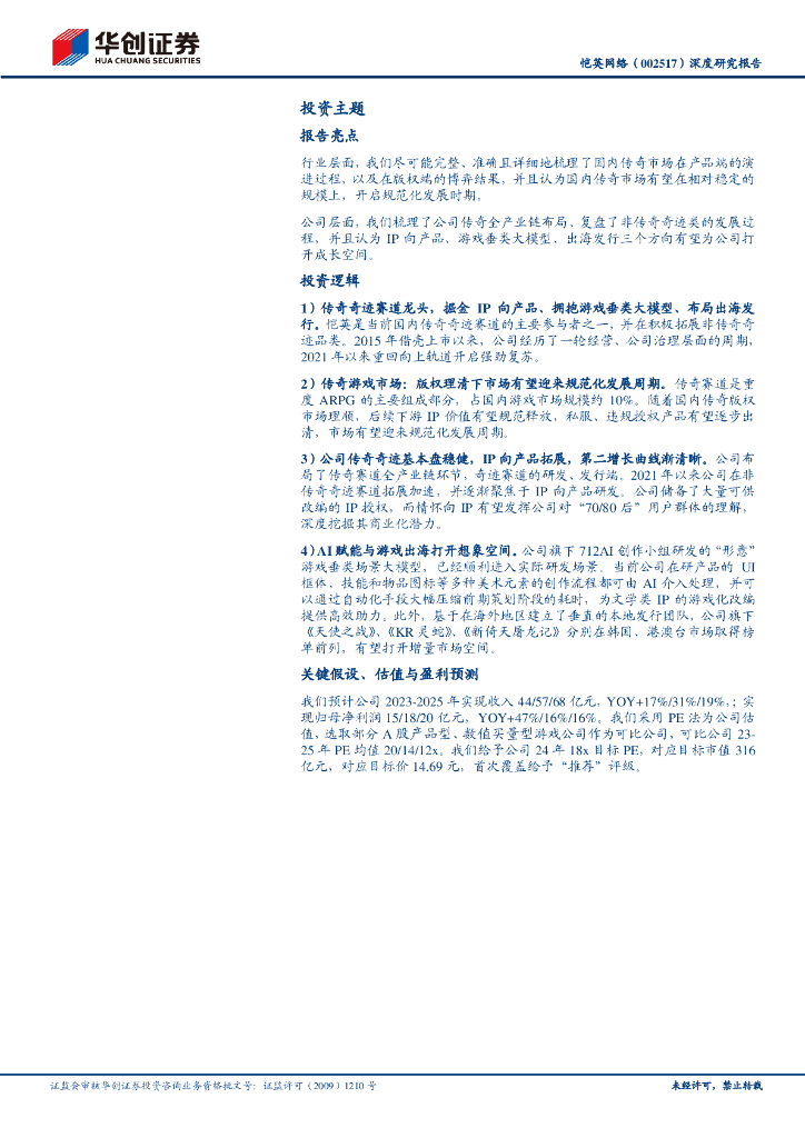 华创证券:恺英网络(002517)深度研究报告:传奇奇迹赛道龙头掘金IP向产品、拥抱游戏垂类大模型、布局出海发行.pdf