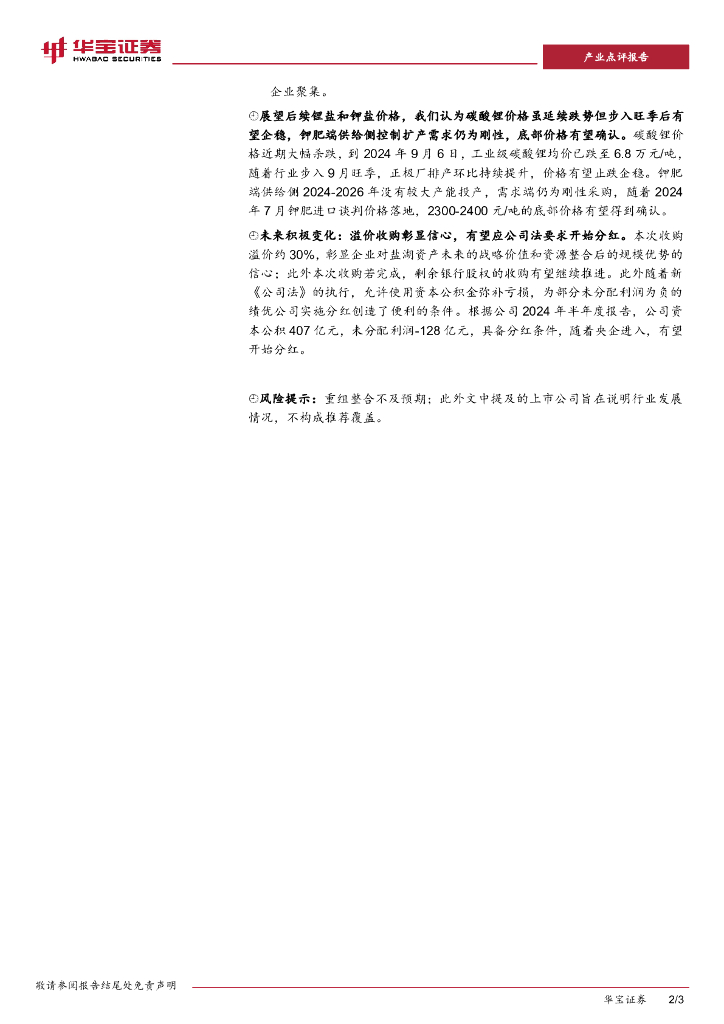 华宝证券:“中国五矿拟收购盐湖股份控制权”点评报告:五矿溢价收购盐湖股份,加快推进国内盐湖资源优化配置.pdf