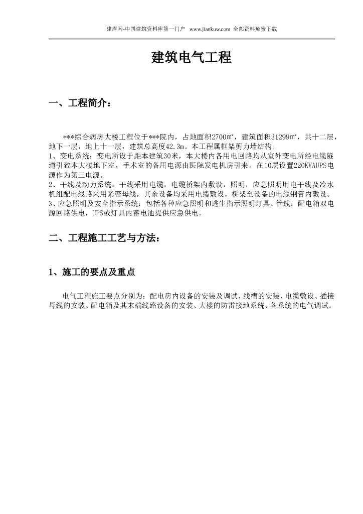 武汉大型医院病综合房楼整套电气施工组织设计方案..doc
