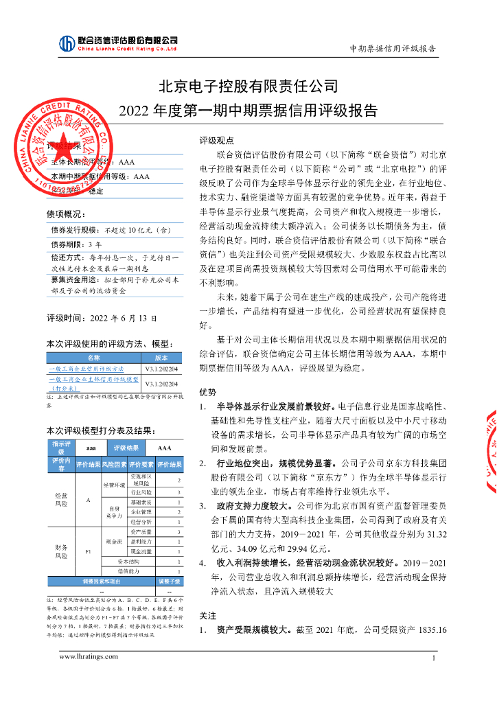 联合资信:北京电子控股有限责任公司2022年第一期中期票据信用评级报告.pdf