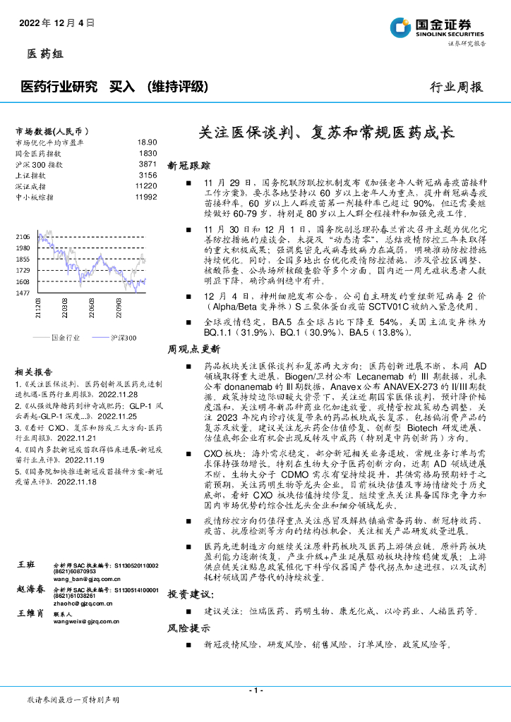 国金证券:医药行业研究:关注医保谈判、复苏和常规医药成长.pdf
