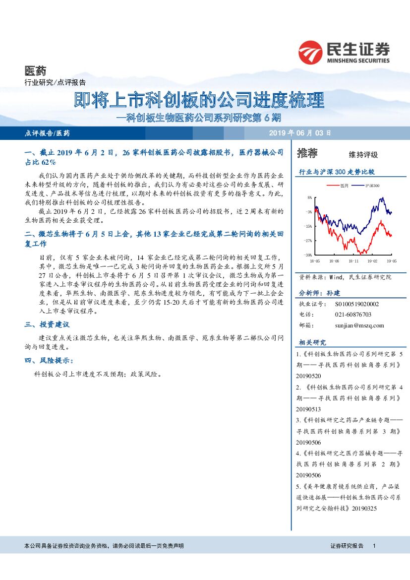 民生证券:科创板生物医药公司系列研究第6期:即将上市科创板的公司进度梳理.pdf