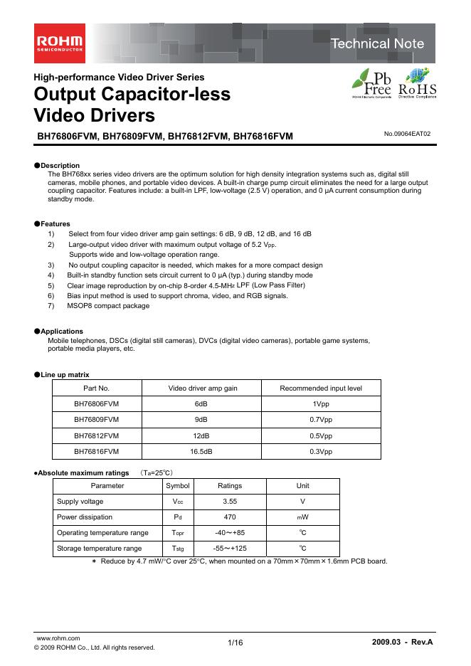 NATIONAL SEMICONDUCTOR - May 27, 2008 DS15BA101 1.5 Gbps Differential Buffer with Adjustable Output Voltage General 说明书