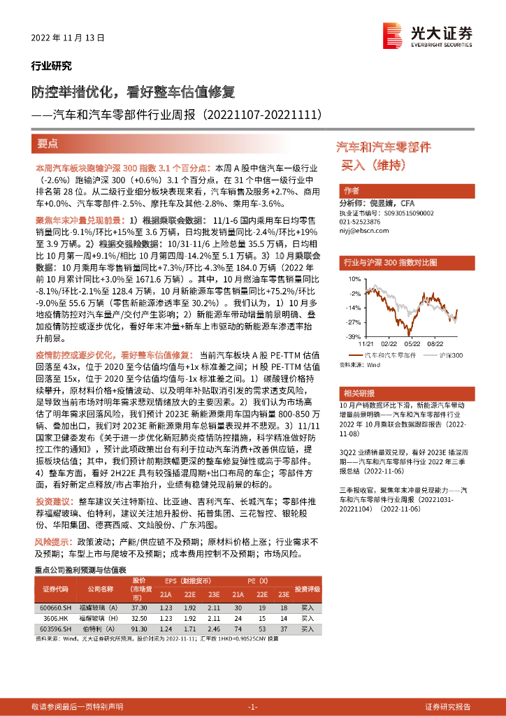 光大证券:汽车和汽车零部件行业周报:防控举措优化,看好整车估值修复.pdf