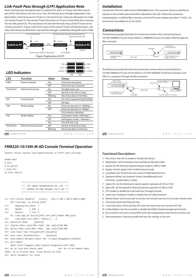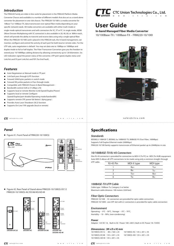 CTC 10/100Base-TX / 100Base-FX – FRM220-10/100I 用户指南.pdf