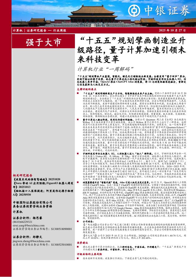 中银证券:计算机行业周报:“十五五”规划擘画制造业升级路径,量子计算加速引领未来科技变革计算机行业“一周解码”.pdf