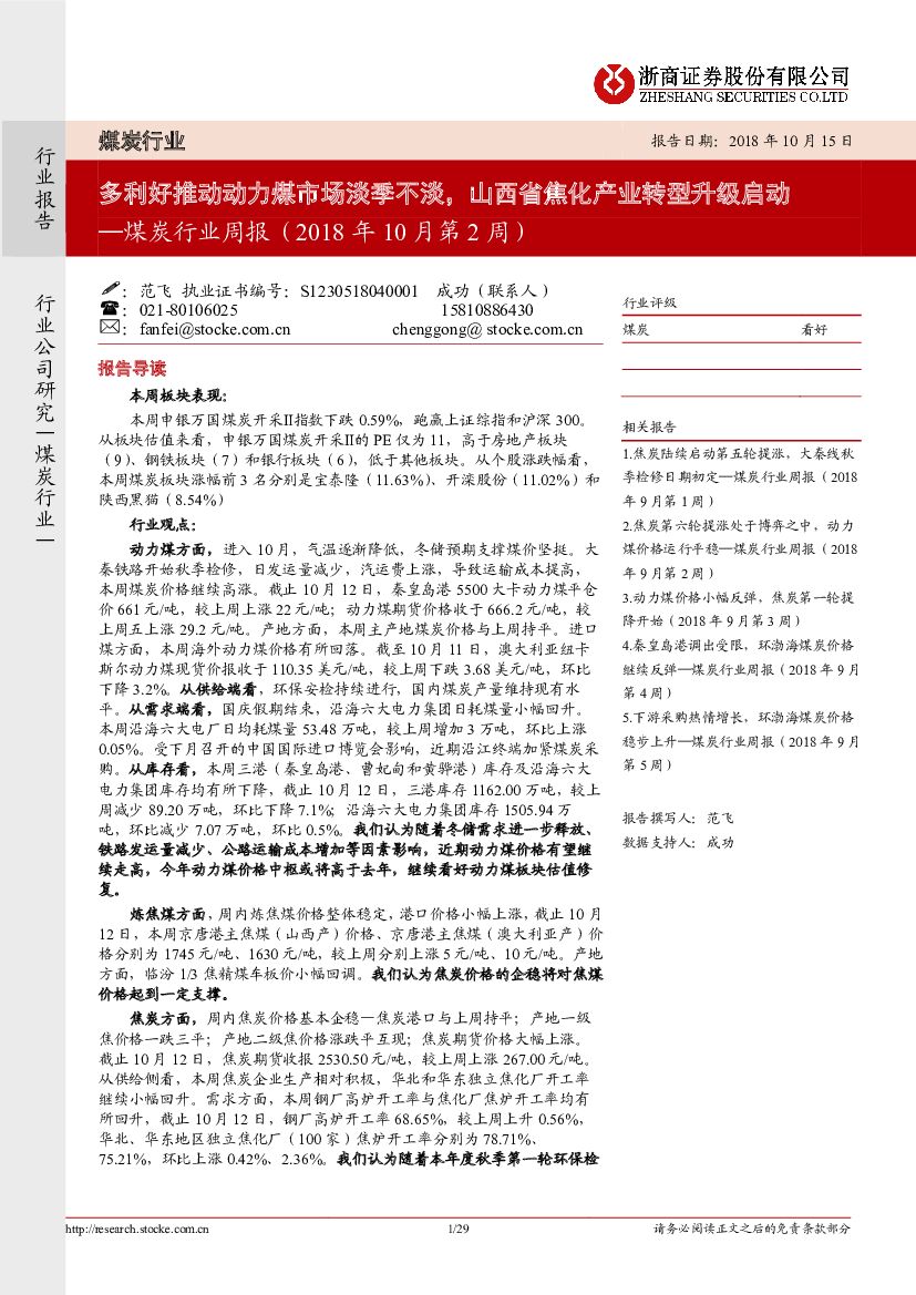 浙商证券:煤炭行业周报(2018年10月第2周):多利好推动动力煤市场淡季不淡,山西省焦化产业转型升级启动.pdf