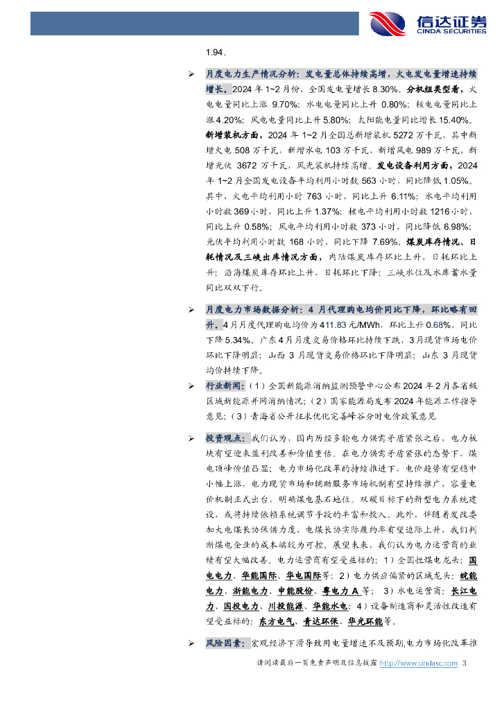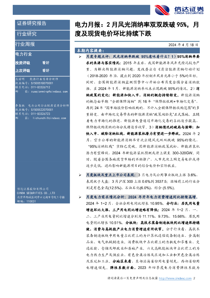 信达证券:2月风光消纳率双双跌破95%,月度及现货电价环比持续下跌—电力行业1-2月月报.pdf