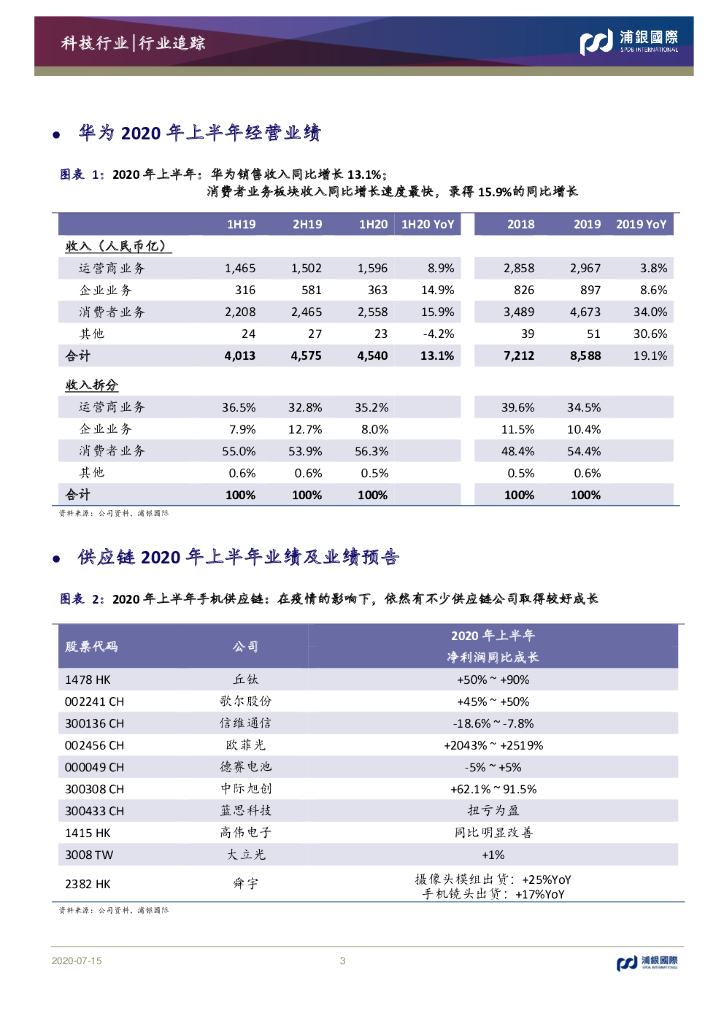 浦银国际证券:科技行业:华为2020年上半年经营业绩解读:上半年消费者业务优于预期,三季度手机需求走弱.pdf