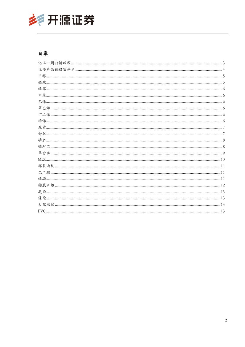 开源证券:化工行业周报:原油价格下挫 甲醇、MDI价格上行.pdf