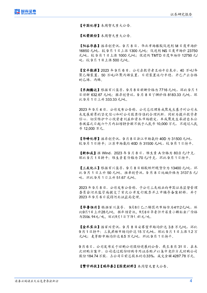 国海证券:基础化工行业周报:硫酸、浓硝酸价格上涨,赛轮转债暂不强赎.pdf