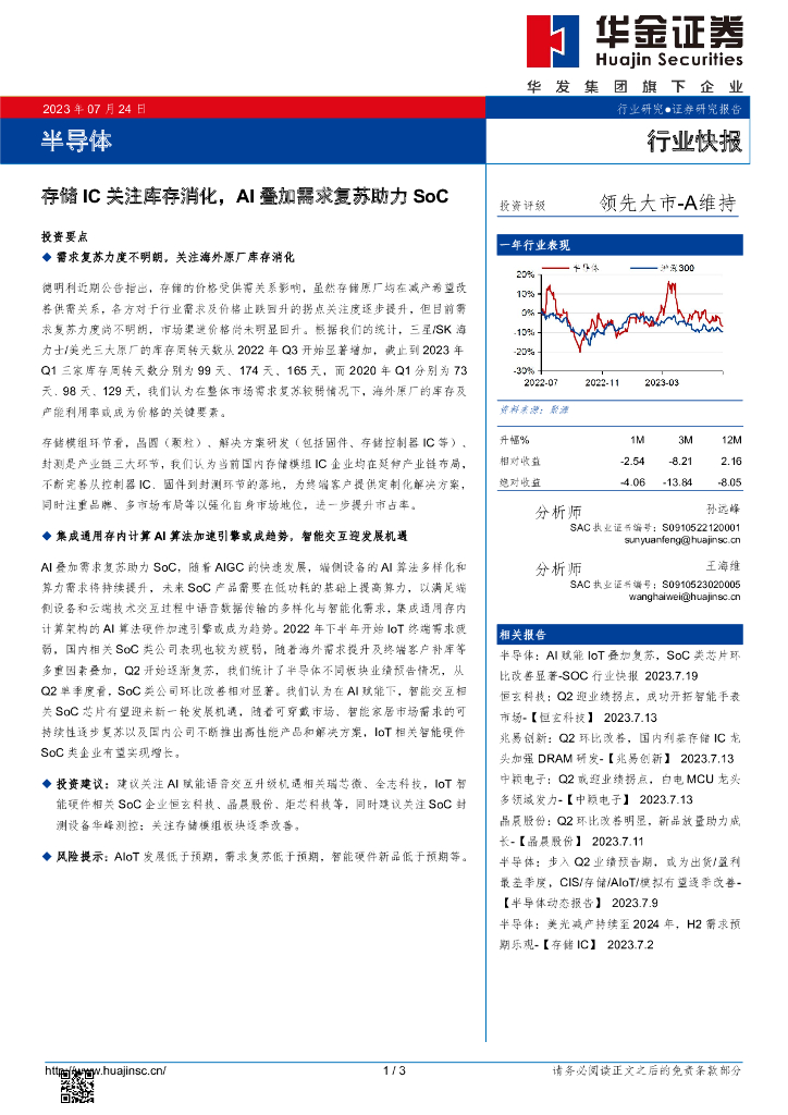 华金证券:半导体:存储IC关注库存消化,AI叠加需求复苏助力SoC.pdf