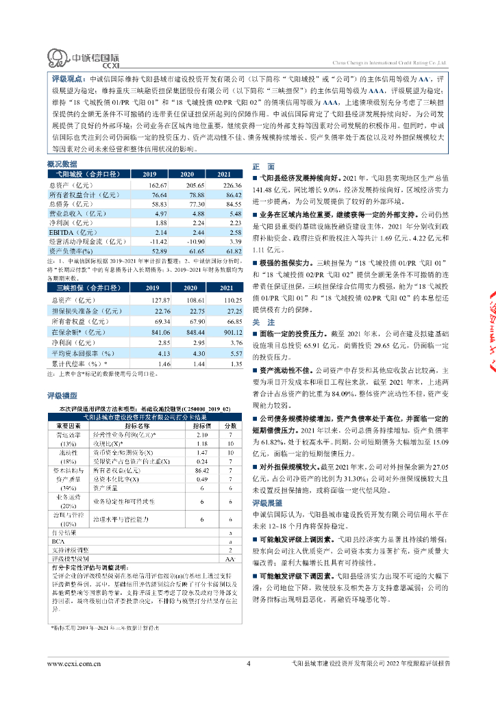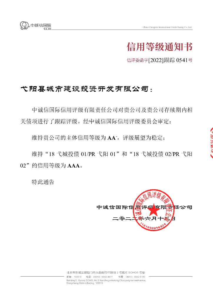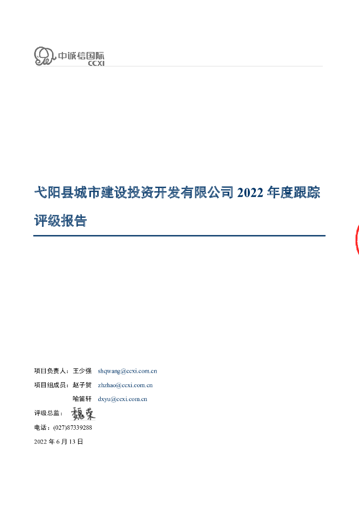 中诚信:弋阳县城市建设投资开发有限公司2022年度跟踪评级报告.pdf