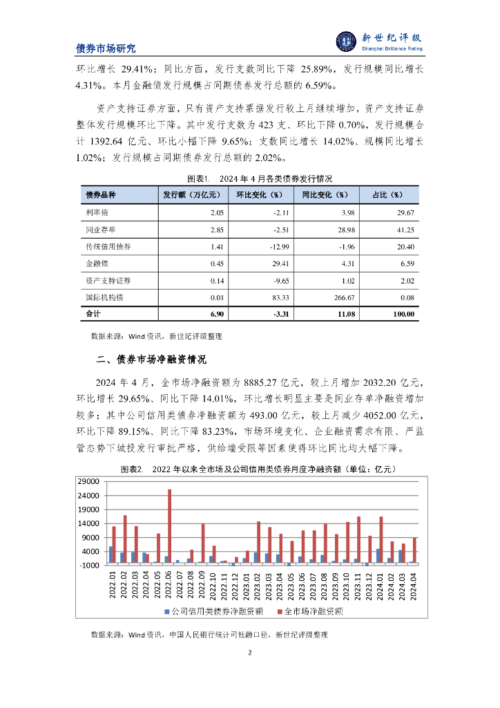 新世纪评级:债市发行规模环比小幅回落——2024年4月债券市场发行概况与政策汇总.pdf