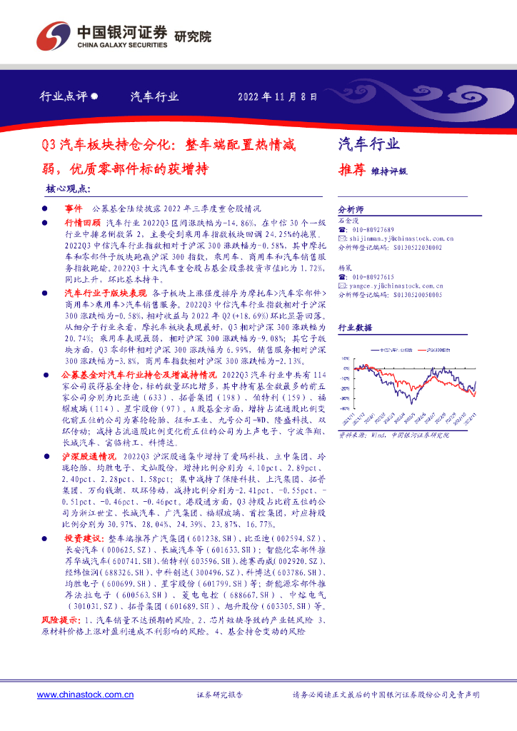 中国银河:汽车行业:Q3汽车板块持仓分化:整车端配置热情减弱,优质零部件标的获增持.pdf