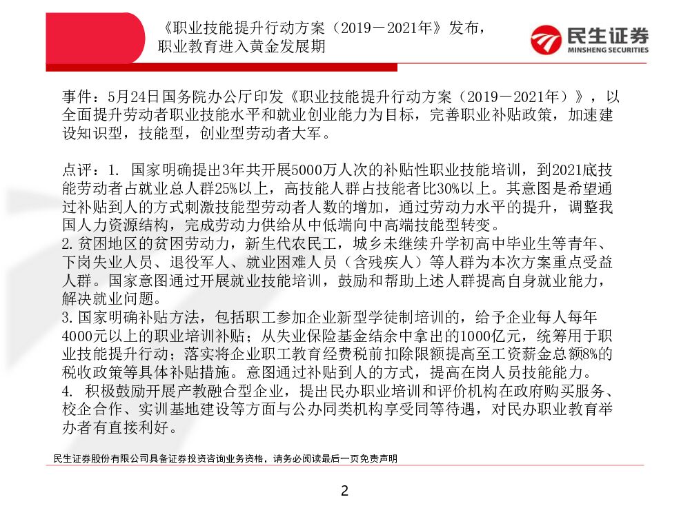 民生证券:《职业技能提升行动方案(2019-2021年》发布,职业教育进入黄金发展期.pdf