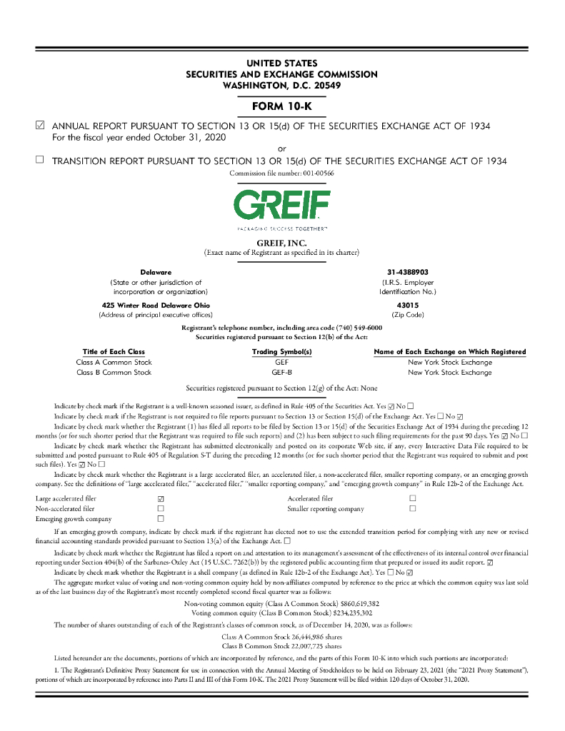 Greif Inc.(GEF)2020财年年度报告(英文版).pdf