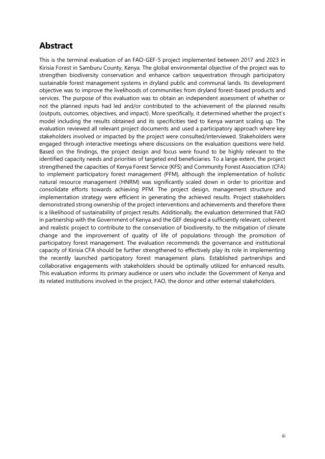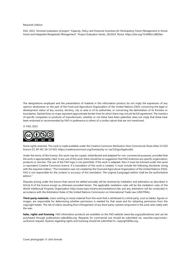FAO联合国粮农组织:2023年对基里西亚森林和综合牧场管理参与森林管理的项目能力,政策和经济激励措施的终末评估报告(英文版).pdf