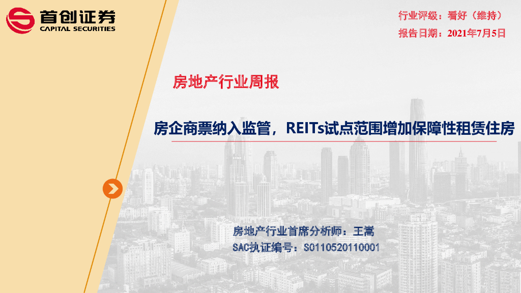 首创证券:房地产行业周报:房企商票纳入监管,REITs试点范围增加保障性租赁住房.pdf