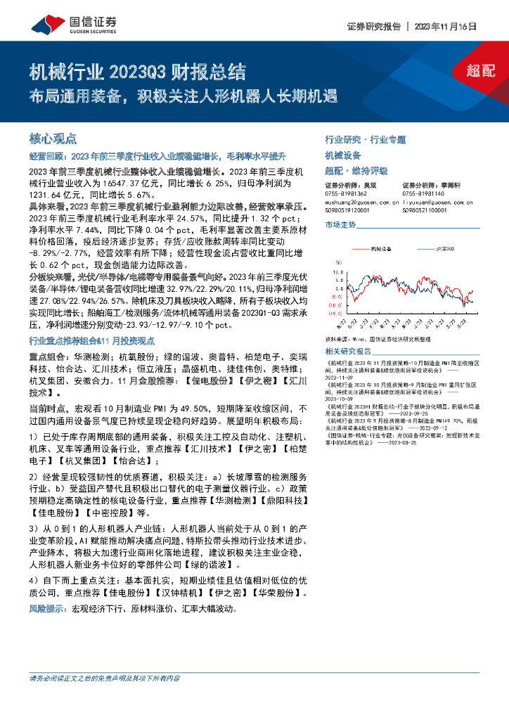 国信证券:机械行业2023Q3财报总结:布局通用装备,积极关注人形机器人长期机遇.pdf