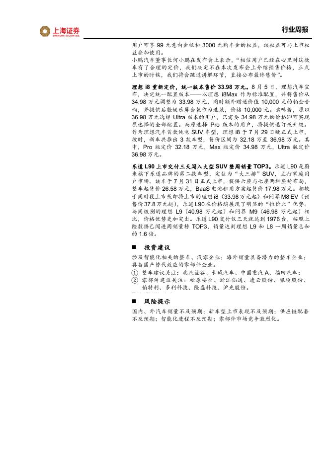 上海证券:汽车与零部件行业周报:7月全国乘用车市场零售同比+6.3%,全新小鹏P76分钟小定破万.pdf