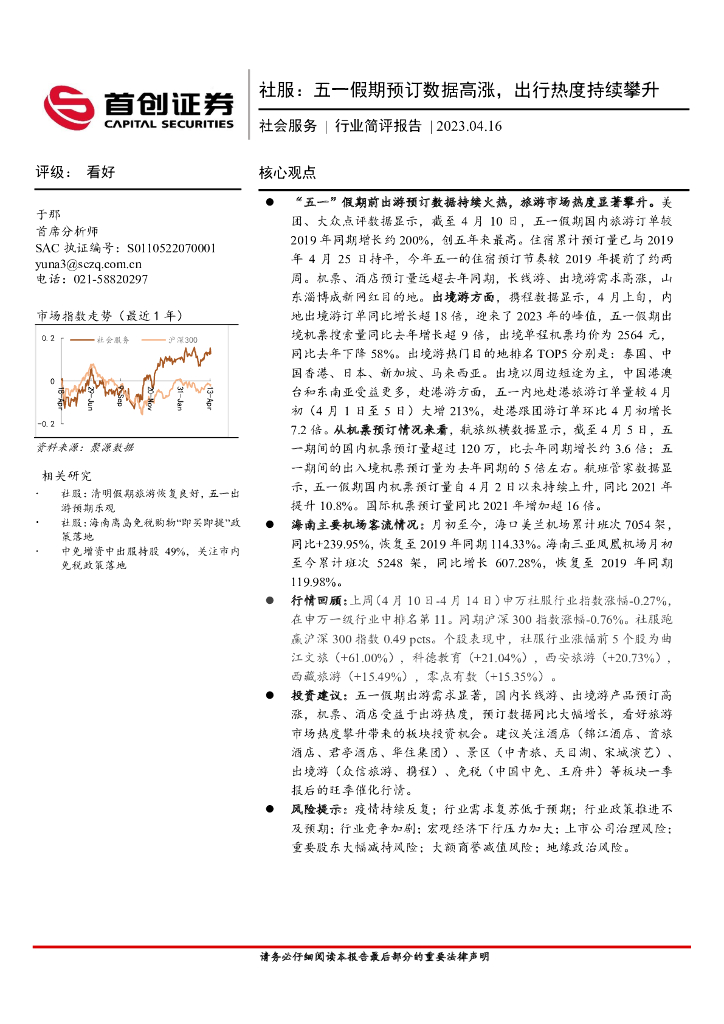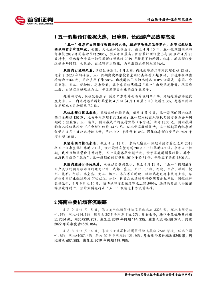 首创证券:社服:五一假期预订数据高涨,出行热度持续攀升.pdf