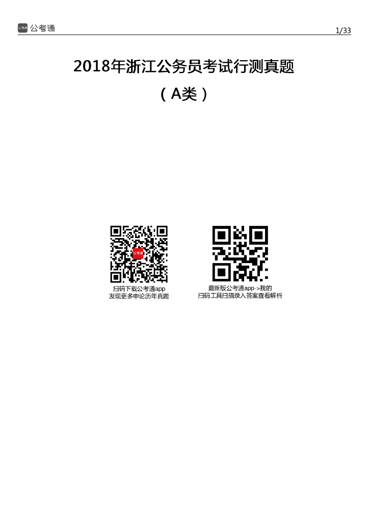 2018年浙江公务员考试行测真题及答案(A类).pdf