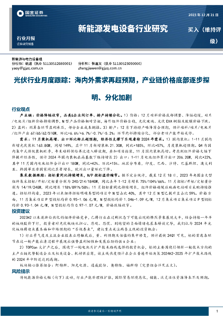 国金证券:光伏行业月度跟踪:海内外需求再超预期,产业链价格底部逐步探明、分化加剧.pdf