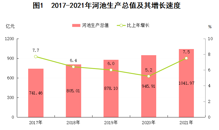 [1]本公报中2021年数据均为初步统计数,最终数据以《河池统计年鉴(2022)》为准。部分数据因四舍五入的原因,存在总计与分项合计不等的情况。