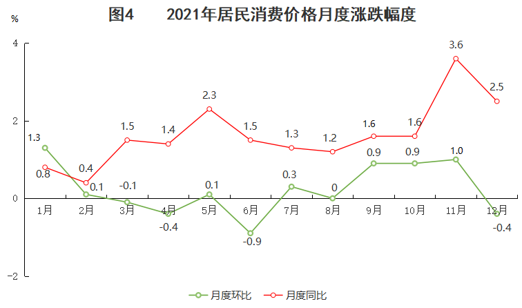 全年居民消费价格比上年上涨1.7%,其中,教育文化娱乐、交通通信、医疗保健、衣着、居住同比分别上涨6.4%、4.8%、4.8%、2.7%、0.5%,其他用品及服务、食品烟酒同比分别下降1.5%、0.9%,生活用品及服务持平。