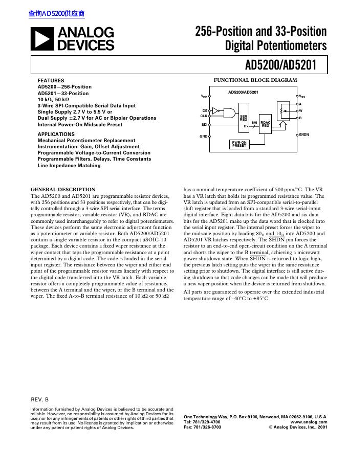 ANALOG DEVICES AD5200/AD5201 数据手册.pdf