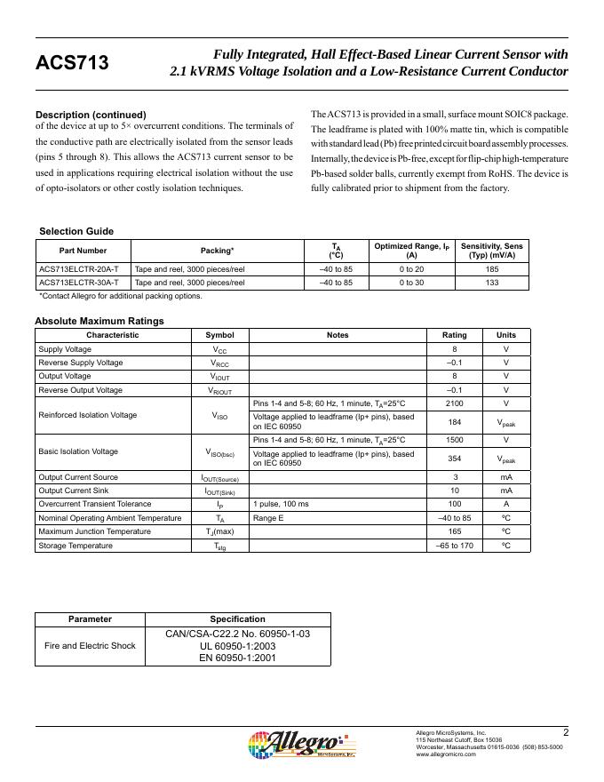 ALLEGRO MICROSYSTEMS - ACS713 数据手册.pdf