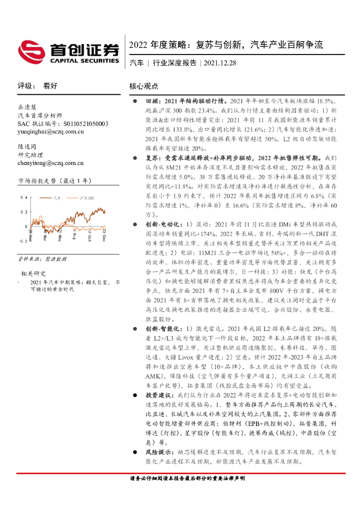 首创证券:汽车2022年度策略:复苏与创新,汽车产业百舸争流.pdf