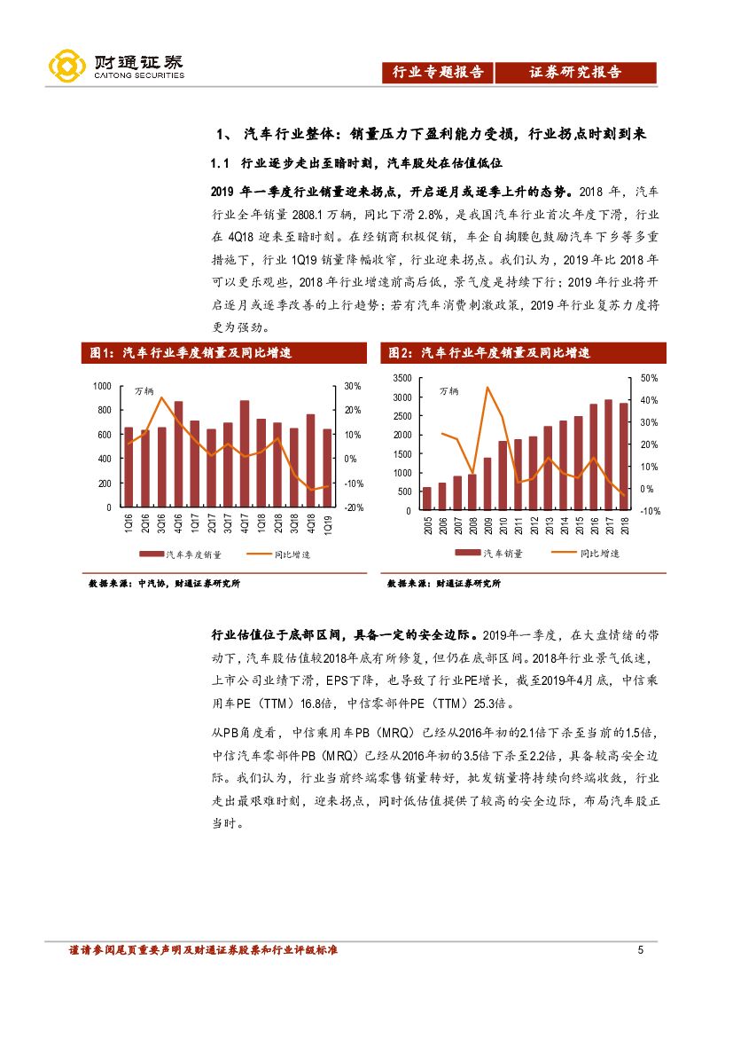 财通证券:汽车2018年报与2019年一季报总结:行业筑底回升在即,超配汽车正当时.pdf