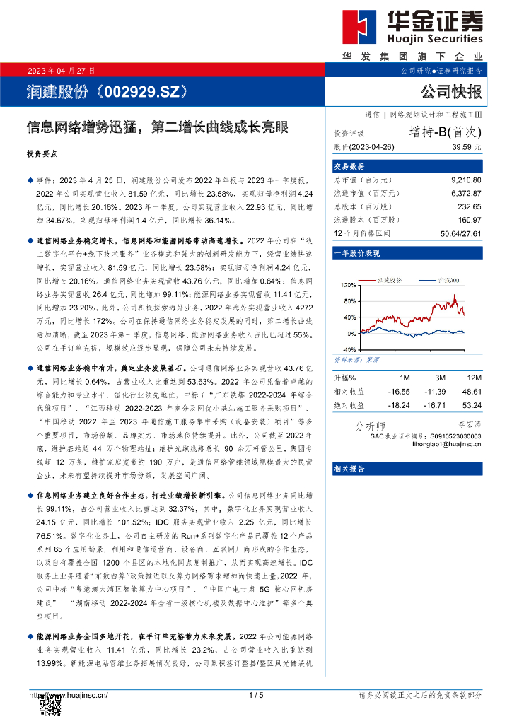 华金证券:润建股份(002929)-信息网络增势迅猛,第二增长曲线成长亮眼.pdf